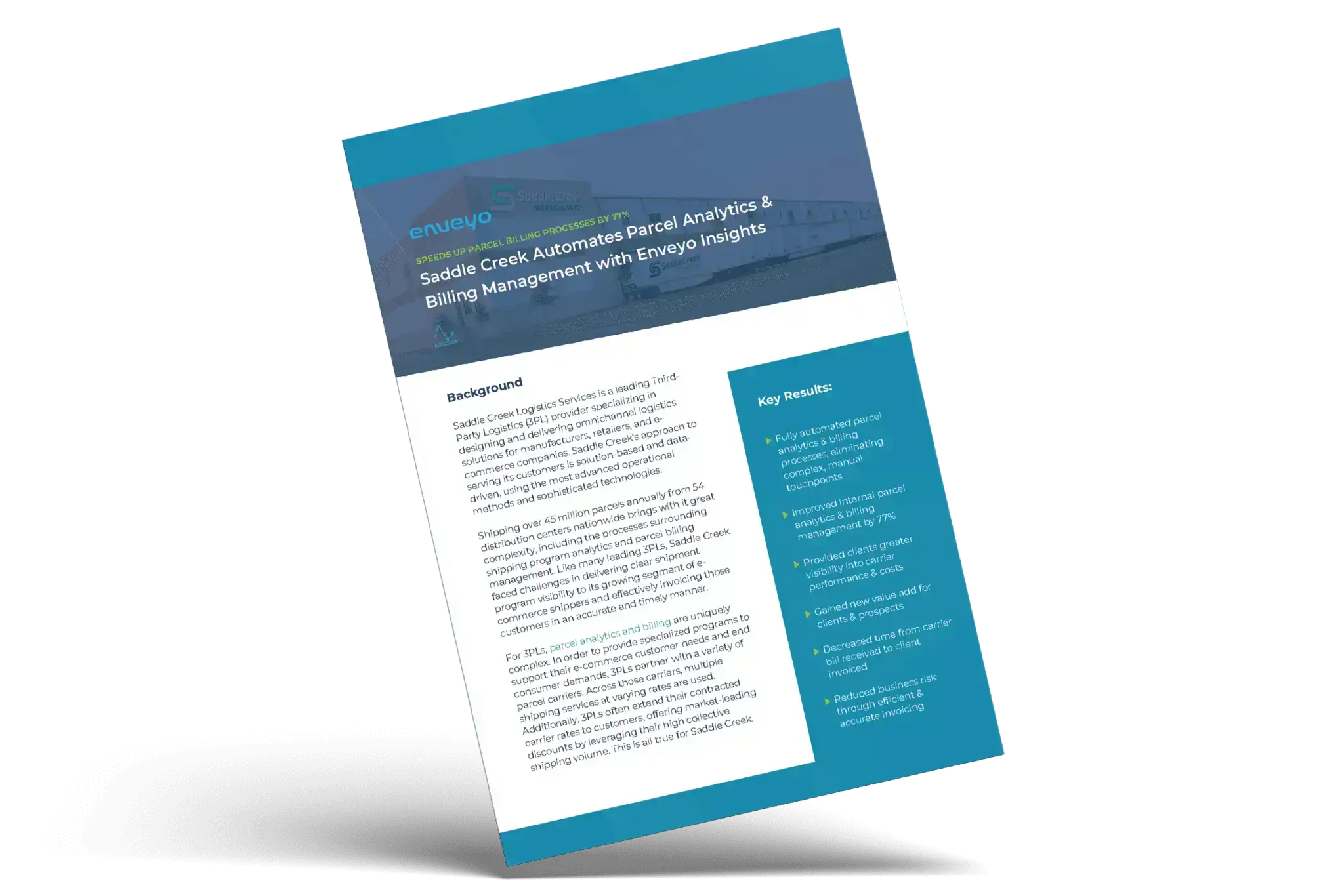 Saddle Creek Logistics Services Automates Parcel Analytics and Billing Management with Enveyo Insights and Improves Internal Processes by 77%.